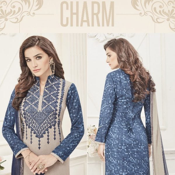 Designer Suits Mix Cotton with Front and Back Design(Blue)