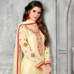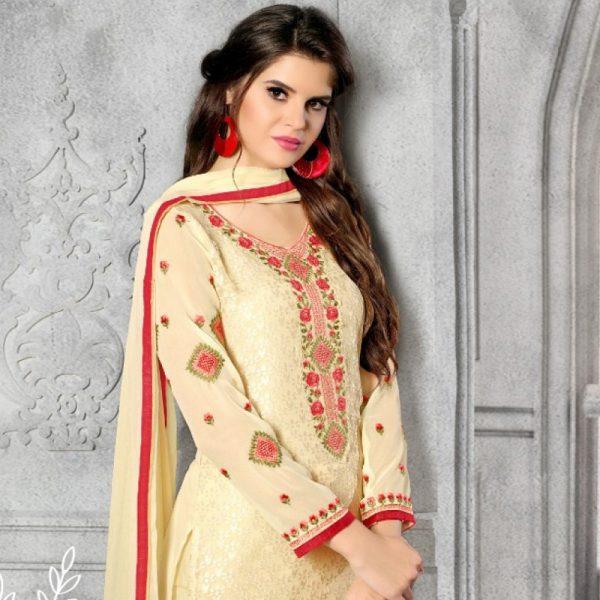 Georgette synthetic suites(Cream colour) Latest design wholesale price each Rs.1500/-